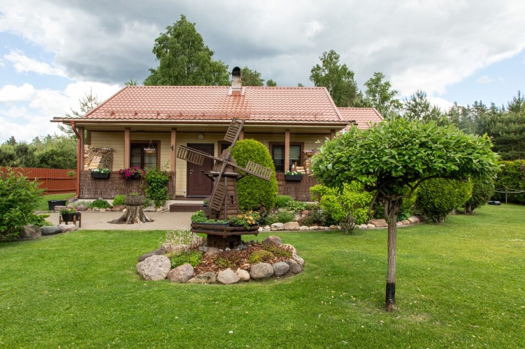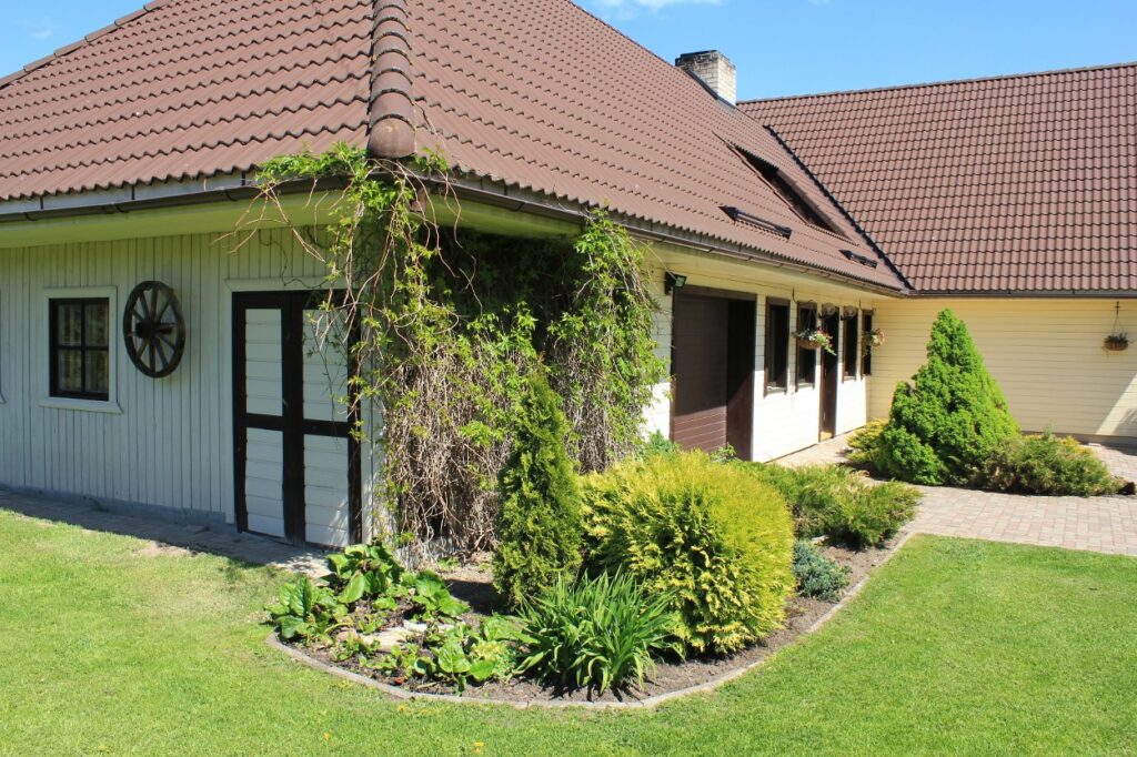 Võimsa kuuseheki varjus peitub esmapilgul traditsiooniline maakodu, kus siblivad ringi kanad ja haned. Üllatusena tabab silm rohelise veega basseini, mida kaitseb tuule eest vahemerelik kivisein. Perenaise hobi on kasvatada suvelillili, mis ehivad nii basseini ümbrust kui kogu avarat taluõue. Peremehe meisterdatud amplipuud toovad õiteilu hästi esile.