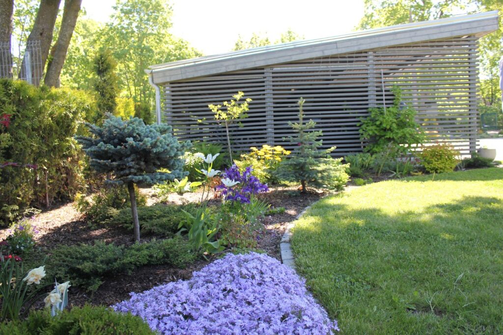 1500 ruutmeetri suurusel reljeefsel krundil on arvukaid istutusalasid, kus eri aegadel õitsevad tuhanded lilled. Kõige õiterohkem aeg aias on kevad – maikuu, kui õitsevad tulbid ja kiviktaimla on õitemeres. Lisaks istutusaladele on pererahvas lilledega ehtinud meetrite viisi terrassipiirdeid – eri värvi petuuniad on selle kodu suured lemmikud. Ja muidugi oskus puid kujundada. Ilulõikuse läbi teinud elupuudest on saanud tõelised vaatamisväärsused, tänu millele on võimalik esile tuua ka kõige tavalisem elupuu. Lillede imetlemiseks ja uute mõtete kogumiseks leidub aias mitu puhkekohta, mille rajamisel on arvestatud päikese liikumisega.