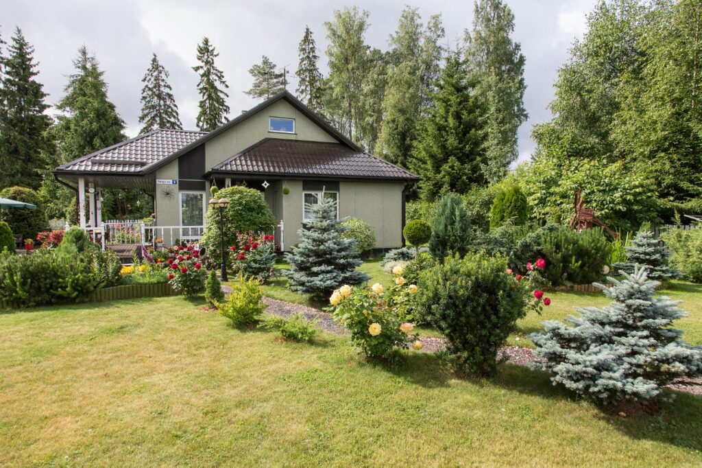 Majapidamine on olnud ühe pere käes, kes on selle rajanud ja kujundanud aastakümnete vältel. Majaesist kaunistavad elupuud ja ilupõõsad. Elupuude vahelt viib kitsas rajake tagaaeda, kus avaneb avar tagahoov ideaalselt hooldatud muruga. Pilgupüüdjaks on punaleheline sarapuu. Veesilmaks kaunis skulptuur. Tagahoovi piirab perfektselt pügatud kuusehekk, mis annab tuulevarju ja privaatsust. Aias leidub mitmeid erivormilisi okaspuuliike.