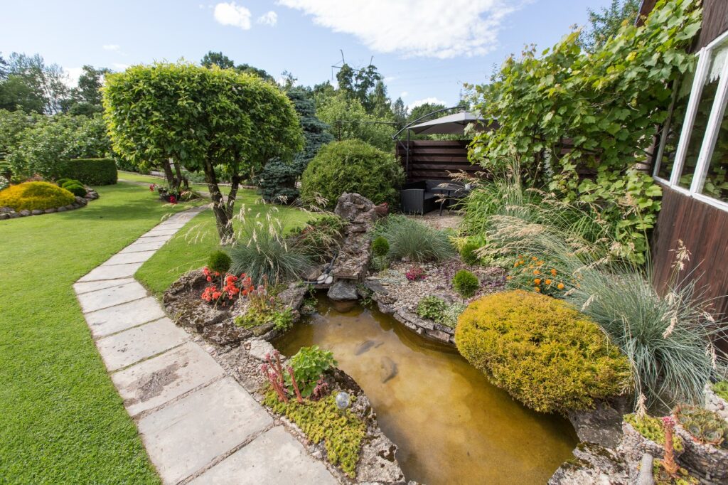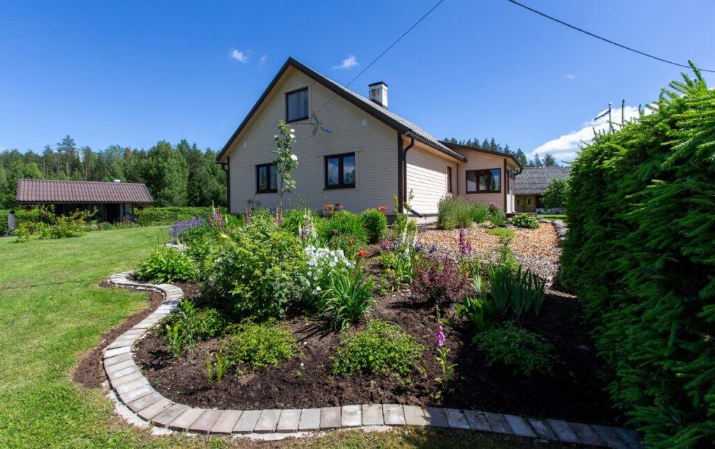 Vaheldusrikka maastikuga koduõuelt avaneb imeline vaade jõeorgu. Loodus on ka iluaia rajamiseks käekirja ette andnud ning sirgeid jooni sealt ei leia. Ilupeenarde ideed sünnivad perenaisel sageli aknast välja vaadates – igasse siseruumi võiks paista midagi ilusat. Näiteks mullu pererahva kätetööna kerkinud sauna lavaruumi aknast saab imetleda värskelt rajatud hortensiapeenart.