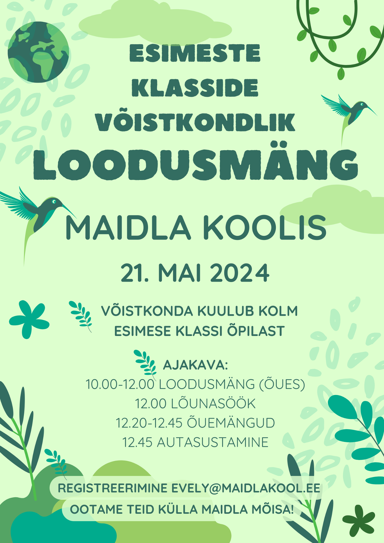 Maidla Kool kutsub 1. klasside õpilasi loodusmängule Maidla mõisaparki (21. mail 2024).