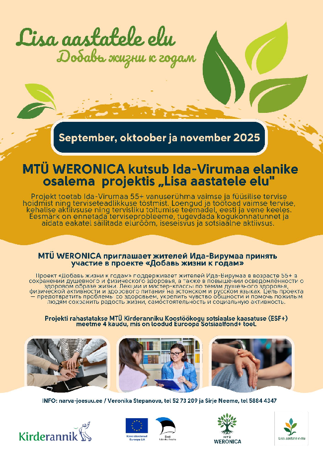 Kirderanniku Koostöökogu ESF+ meetme 4 „Sotsiaalne kaasatus" kaasrahastamisel algab uus projekt, mis on suunatud 55+ vanuserühmale.