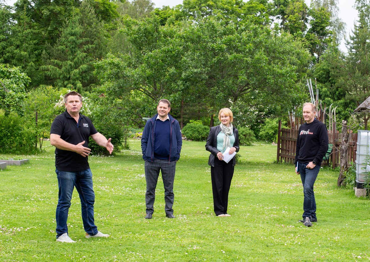 Aare Rebban tutvustamas heakorrakomisjonile oma koduõue. Maakondlik tänusündmus on kavas septembris läbi viia just seal - Kaevuri majas. Fotograaf: Matti Kämärä